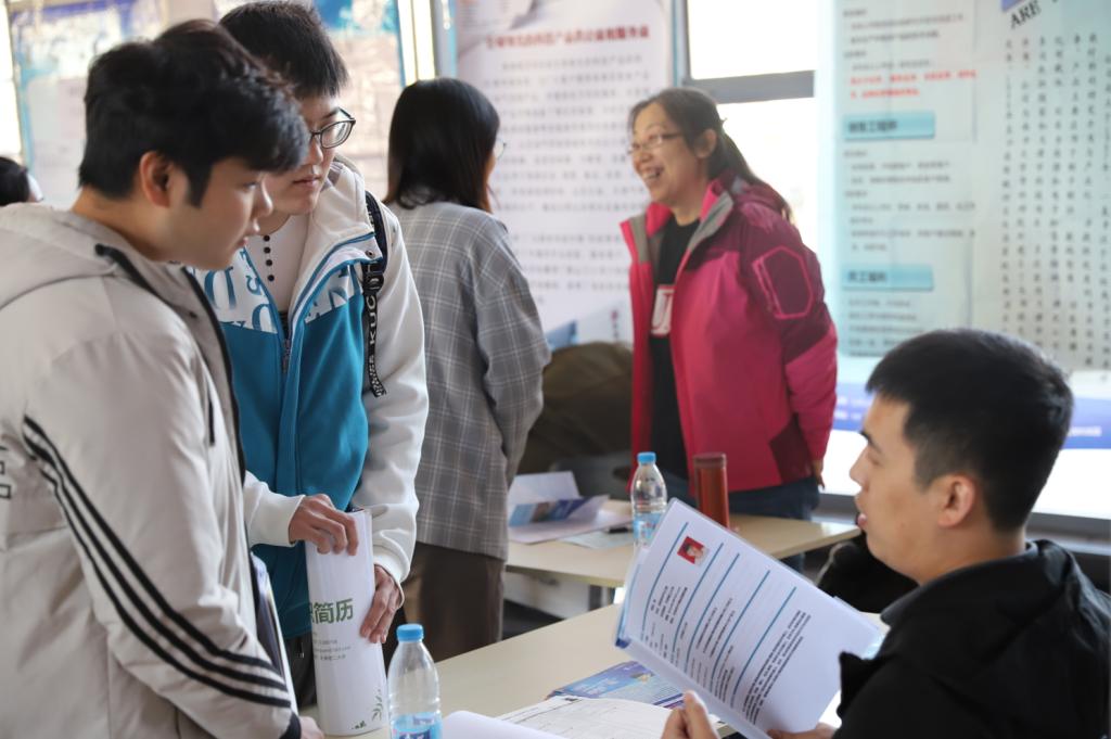 招聘会现场气氛热烈,学生积极介绍自身优势和就业竞争力,询问岗位工作内容、工作职责等问题。企业根据自身用人需求择优筛选优秀人才,部分学生与用人单位达成了初步就业意向。