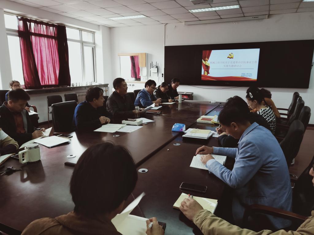 为深入贯彻落实“不忘初心、牢记使命”主题教育要求,扎实推进巡视巡查整改工作,持之以恒抓党风促教风端学风,11月6日,机械工程学院党委召开关于党建带动学院事业工作发展专题研讨会,学院党委书记于海波主持会议,全体党委委员、支部书记、系部主任参加会议。