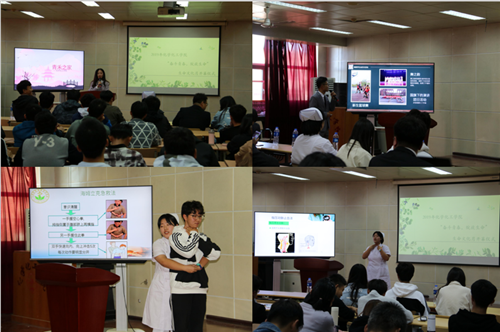 在启动仪式结束后,为了增强对大学生的生命健康教育,邀请了天津医学高等专科学校护理系韩雨君同学,开展了“上呼吸道急救法”和“海姆立克急救法”基础知识的交流分享,精彩生动的讲解和示范,给现场学生带来了别开生面的一课,受到了学生的一致好评。