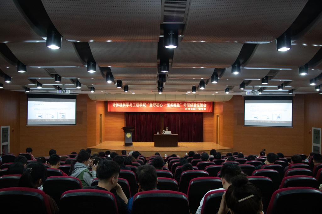 为了贯彻落实上级党组织“不忘初心、牢记使命”主题教育工作安排,树立良好学风,10月12日晚,计算机科学与工程学院研究生第一党支部在理学院报告厅开展“不忘初心·服务师生”考研经验交流会,党支部党员和17级本科生百余人参与了本次交流活动。