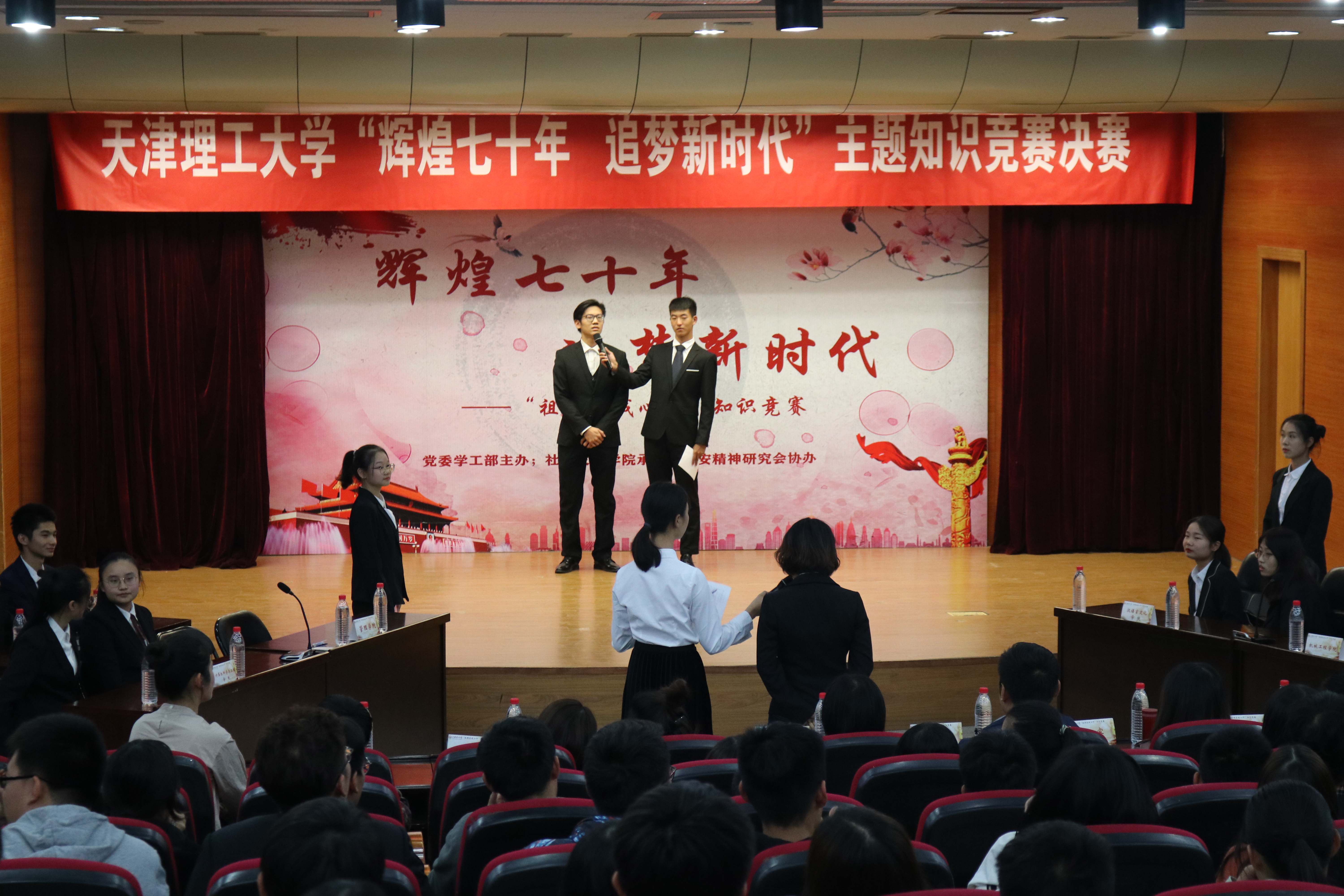 为庆祝中华人民共和国成立70周年,深入贯彻习近平新时代中国特色社会主义思想,于新学期伊始引导青年大学生重温习近平总书记的爱国“三问”,学习了解祖国的新知识新精神、增强爱国意识、提高自身政治素养,由校党委学工部主办,社会发展学院承办、延安精神学习会协办的米兰milan官方网站“辉煌七十年 追梦新时代”主题教育活动之“祖国在我心中”主题知识竞赛决赛于10月16日成功举办。