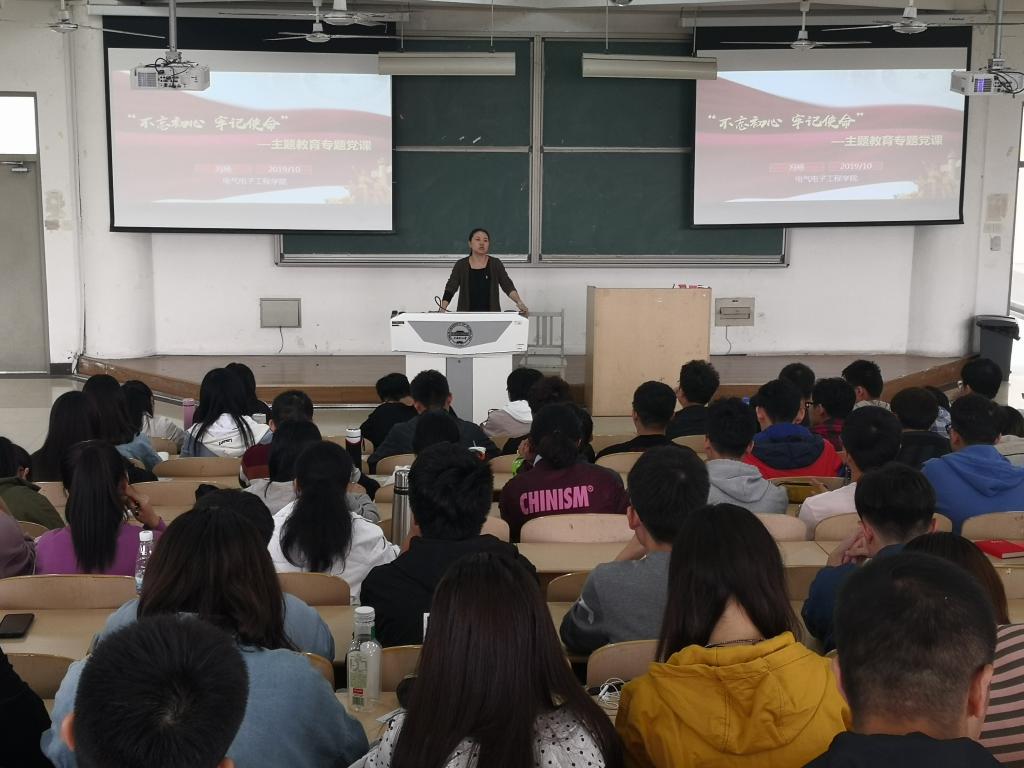 为培育坚定共产主义理想信念,具有爱国爱党情怀,勇于担当使命的新时代3E青年,电气电子工程学院围绕“不忘初心牢记使命”主题教育内容,在二级党校培训中陆续开展“以初心领航·践行使命担当”系列活动。10月10日,院党委副书记冯杨老师以“不忘初心牢记使命—新青年勇担新使命”为题,为学院全体入党积极分子及部分师生党员上了生动一课。