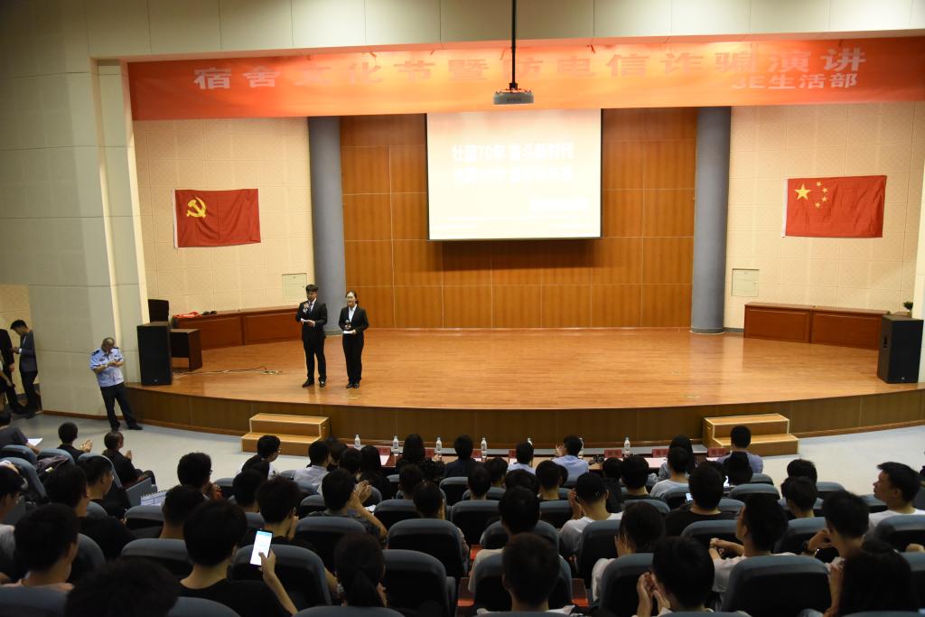 为提升宿舍文化品位,陶冶学生情操,充分发挥宿舍文化在学生爱国主义培育中的功效,近日,电气电子工程学院在环安报告厅举办“小我融入大我·青春告白祖国”3E宿舍文化节开幕式暨防电信诈骗安全教育宣讲会,倡导同学们在此次的宿舍装饰大赛中以“青春告白祖国”为主题,将爱国情融入到文明寝室创建过程中,营造正能量的校园文化环境。