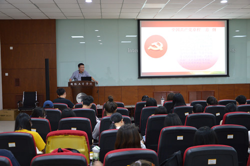 为深入开展“不忘初心、牢记使命”主题教育,厚植广大青年爱国主义情怀,培养广大青年的历史责任感、使命感和高尚的爱国主义情操,国际工商学院9月27举办“不忘初心、牢记使命”暨初级党课开班仪式,学院党委书记王海滨进行了“学好党章,坚定信仰,争做合格共产党员”的专题教育,相关负责老师、学生党员、发展对象、积极分子参与此次专题教育活动。