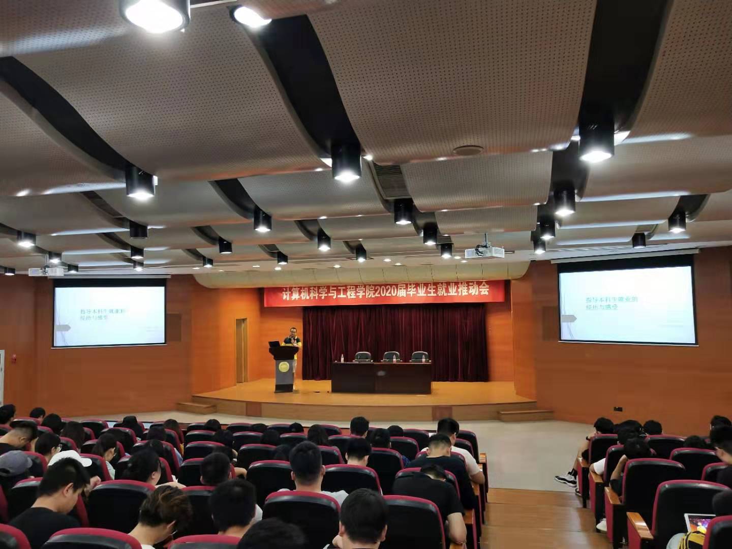9月26日下午,计算机科学与工程学院在理学院报告厅召开2020届毕业生第二次就业推动会。学院学生工作负责老师、班主任、辅导员及2020届毕业生代表近两百人参会。