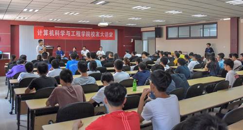 为纪念建校40周年,计算机科学与工程学院近日邀请各届校友回家并开展纪念活动,此次校友大讲堂特邀学院创新实践中心的五位优秀校友代表张剑、王东、王正、白凡、高彪,为在校大二大三的学弟学妹们分享成功经验和职场心得。