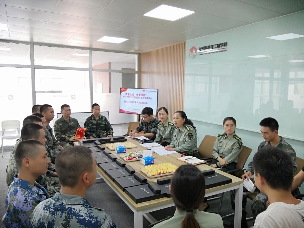 9月9日,材料学院为即将踏上军旅征程的11名入伍新兵战士举办欢送仪式,同时,为近期我院陆续返校的退伍学生举行欢迎会。学院有关负责人、辅导员以及退伍学生代表参加此次活动。