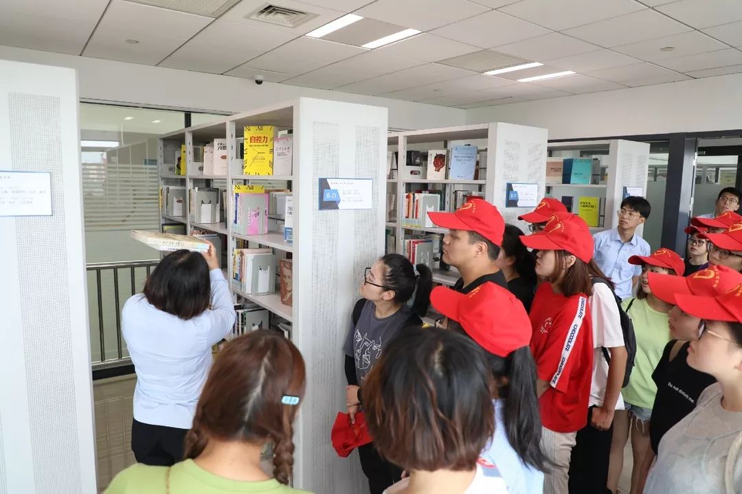 实践团参观了西岸书斋、幼儿阅读室、文体中心共享空间及电子阅读自习室,全方面了解图书馆的社会化运营过程,包括模拟读者借还书流程、丰富的品牌活动介绍与先进的阅读设备操作展示等,感受了智慧图书馆服务的高效率和温馨的阅读环境。工作人员详细介绍了图书排架规则、接待礼仪和“三个一切”的服务理念,演示自动化借阅机、电子检索系统、图书杀菌消毒机的使用等,同学们体验操作,并分组开展图书整理竞赛。随后师生们与工作人员深入交流,感受到了智慧图书馆的便捷和人性化服务的特色,更要大力倡导全民阅读,发扬优秀的传统文化精神,增强文化自信。