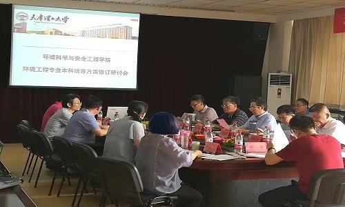 7月5日下午,环境科学与安全工程学院在5楼会议室召开了环境工程专业2019版本科生培养方案修订研讨会。为了使培养方案更加适应社会经济发展需求,本次研讨会邀请了环境科学与工程类国家教指委副主任委员南开大学环境科学与工程学院鞠美庭教授、天津大学环境科学与工程学院赵林教授、天津市市政工程设计研究总院第四设计研究院副院长李国金总工程师、天津创业环保集团股份有限公司副主任刘范嘉正高工、中国市政工程华北设计研究总院有限公司教授级高工黄鹏、天津市海中天环境治理有限公司总经理常继海以及天津绿标节能环保设计院副院长秦建等七位企业行业专家参加。