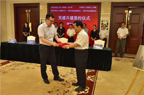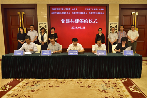 5月23日,聋人工学院党总支与天津市开发区工委(管委会)办公室、天津市开发区人才服务中心、天津开发区国际商会、天津开发区慈善协会签署共建协议,来自五个单位的党组织负责同志与党员代表参加活动。