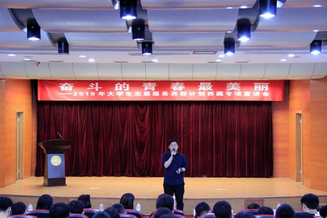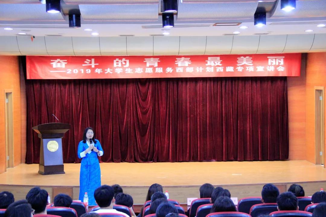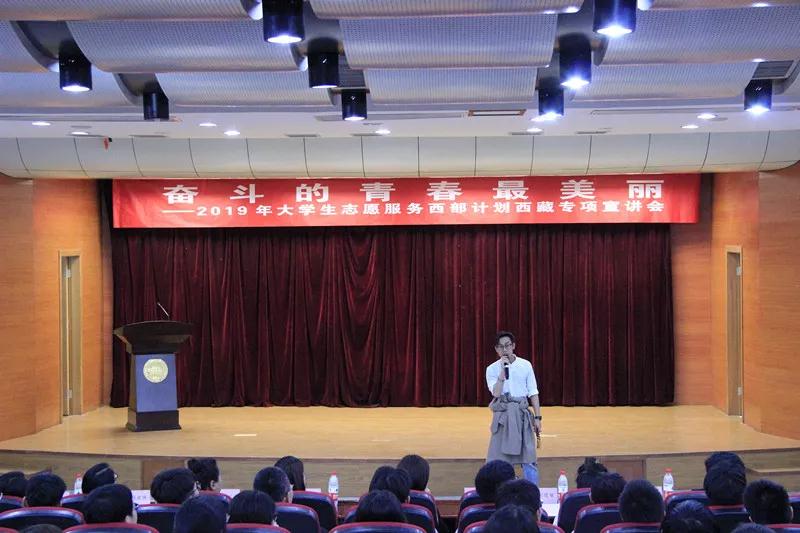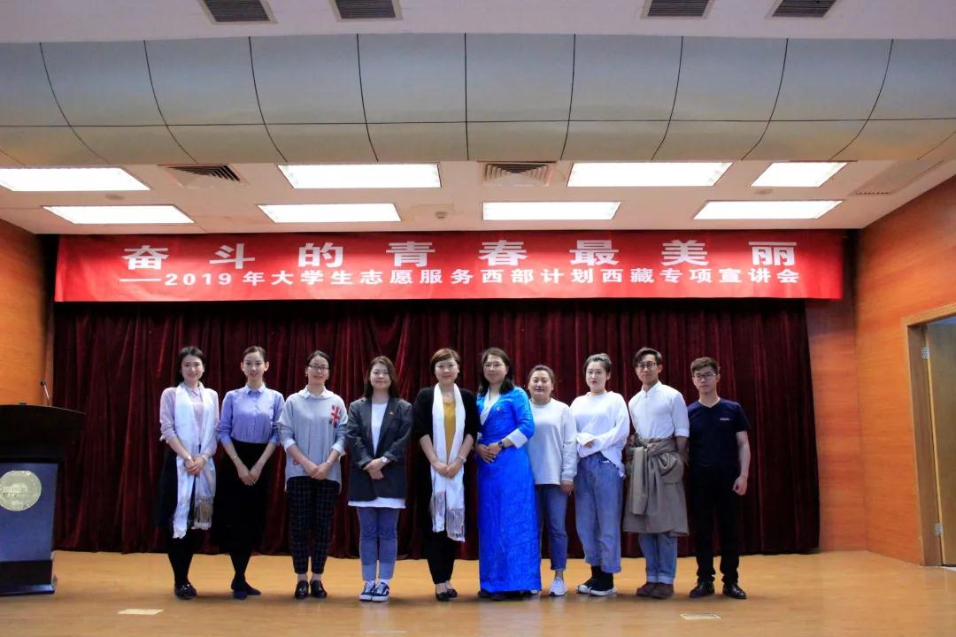 5月7日下午,2019年大学生志愿服务西部计划西藏专项宣讲会在理学院报告厅举行,来自西藏自治区的西部计划优秀志愿者们向米兰师生分享了他们作为志愿者扎根西藏、服务基层、奉献青春的宝贵经历。大学生志愿服务西部计划西藏专项宣讲团团长、西藏自治区团那曲市委副书记何晓娟,宣讲团秘书长、西藏自治区团阿里地委基层组织建设部部长索朗白姆,优秀青年志愿者、校团委全体成员出席宣讲会,200余名应届毕业生代表积极踊跃参与其中,反响热烈。