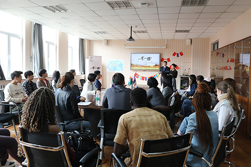 会上,中国学生代表首先阐述了“一带一路”倡议的发展历程和建设成果。来自肯尼亚的留学生雅言分享了自己国家加入“一带一路”沿线国家后发生的变化,特别是轨道交通迅速发展,给人民的生活带来了极大的便利;泰国留学生善学表示,中国为泰国的旅游业发展做出了巨大的贡献,同时在制造业方面也给予了泰国非常大的帮助,希望能够学习到更多的中国博大精深的文化,为促进中泰两国发展做出贡献;印度留学生张博文讲述了近年来印度在各方面的建设情况,特别是迅速发展的文化产业,表示要做中印优秀传统文化的传播使者,为两国文化发展共同繁荣贡献自己的力量。随后,来自乌克兰、土库曼斯坦、科特迪瓦的留学生代表卡特热娜、阿塔加纳、丁以色列也结合自身经历,分享了故乡得益于“一带一路”建设的发展变化。最后,张明老师介绍了学校及学院落实“一带一路”政策的重要举措,“一带一路”中东欧研究院的建设情况,以及“走出去请进来”的中外融合教育模式。