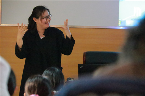 杨博士讲述她童年不幸的遭遇,4岁半因发烧打针致耳聋,再也听不到世界上美妙的声音。但是,她不甘于此,依靠自身努力,进入首都师范大学读书,后来又远赴美国,在世界第一的聋人大学加劳德特大学获得聋人教育博士学位,一直到2007年,她不断克服常人无法想象的困难,终成为英国中央兰开夏大学高级讲师。随后杨老师向大家介绍英国中央兰开夏大学毕业生就业情况,展示就业培训服务和多媒体课程资源,讲解就业能力发展模式和就业能力的关键因素。赵虹博士讲述了她在平凡的日子里做的不平凡的事情。大学毕业工作六年后辞职,前往韩国留学三年。回国之后,边学习边创业,成立自己的公司,教授手语,举办夏令营,倡导聋健相互学习,相互帮助,并为我们展示了公司的优秀拍摄作品。