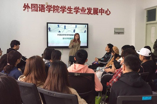 外国语学院学业发展中心坚持每年3-4月份开展学风建设活动月活动,努力打造以教风带学风、以管理育学风、以活动促学风三位一体的学业指导机制。外国语学院将继续发力,坚持问题导向,开展宿舍学风调研,了解学生需求,举办形式多样、丰富多彩的系列活动,激发学生学习兴趣,引导学生养成良好的学习习惯,掌握正确的学习方法,营造浓厚的学习氛围。