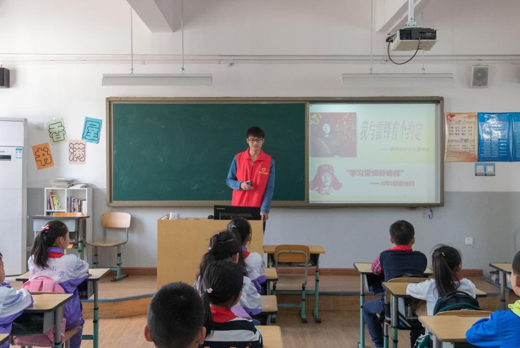 为弘扬雷锋精神,厚植爱国情怀,践行社会主义核心价值观,3月27日,米兰milan官方网站计算机科学与工程学院青年志愿者协会志愿者前往水上小学温泉校区开展“我与雷锋有个约定”主题班会活动。