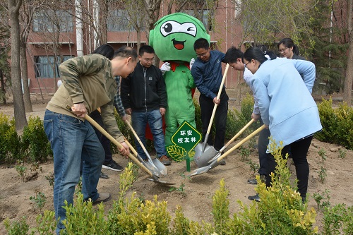 本次环安节以“植树”的方式开启环保之旅,师生们共同在学院门前种下由张启龙提供的三百余株小叶黄杨和几十余株月季,承载着美好情谊与希望的小树苗相信在不久的将来会成长为枝繁叶茂的“校友林”,向优秀校友一样,蓬勃发展。