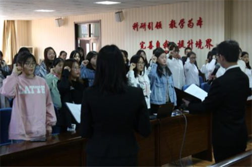 随后,主持人带领全体同学郑重宣誓:“我愿意成为雷锋精神的践行者,大力弘扬雷锋精神,从自己做起、从身边小事做起,坚持“爱国守法、明礼诚信、团结友善、勤俭自强、敬业奉献”的道德准则,在服务社会、报效祖国的实践中不断做出新的贡献。”铿锵有力的声音响彻报告厅,坚定的眼神彰显米兰管院学子的决心。