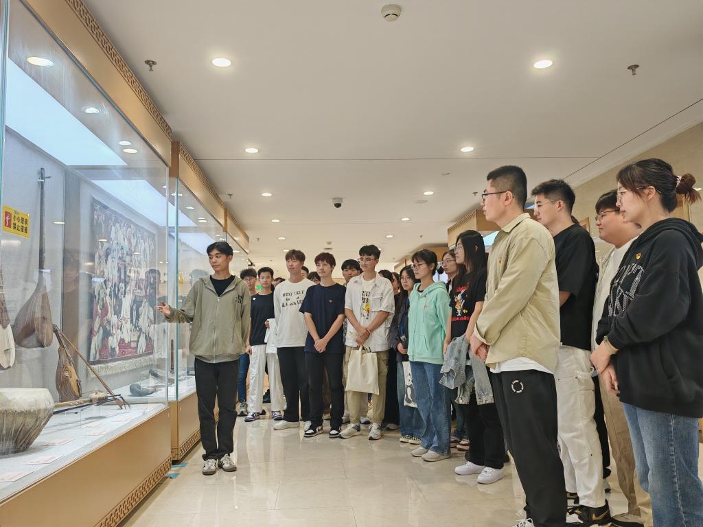 首先,师生代表们走进天津市民族文化宫进行参观。馆内讲解员详细介绍了各民族的乐器,生动阐述了这些乐器背后的文化故事,让师生们在欣赏乐器之美的同时,对各民族的音乐文化有了更加全面、深入地了解。