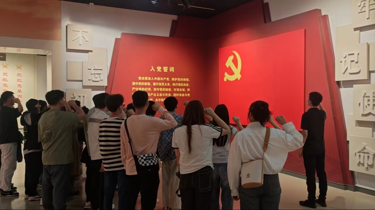 最后,全体师生党员面向党旗,重温入党誓词,寄托对烈士的崇高敬仰和无尽哀思,表达了为党的事业奋斗终生的决心。
