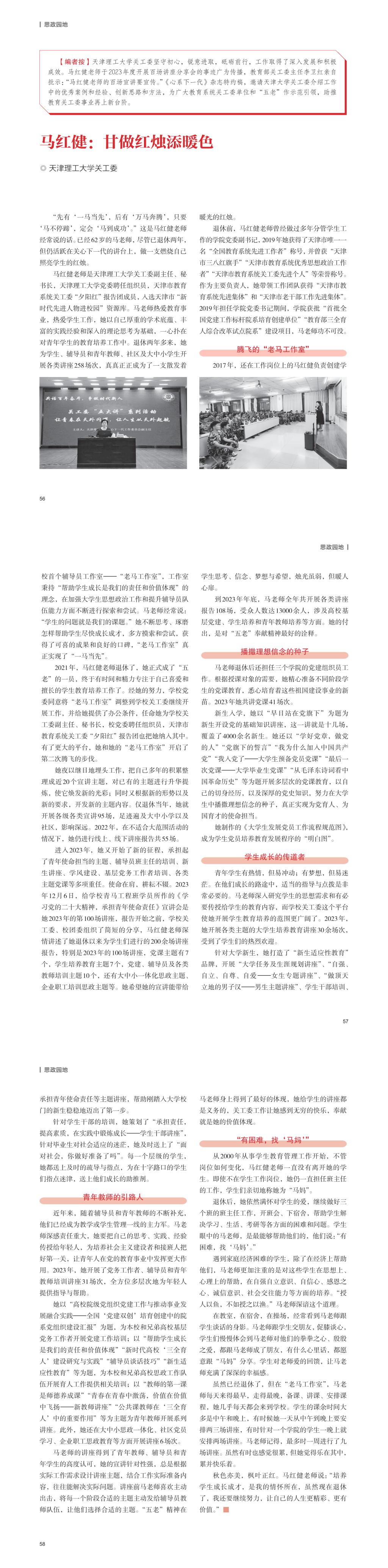 教育部关心下一代工作委员会工作刊《心系下一代》:马红健:甘做红烛添暖色