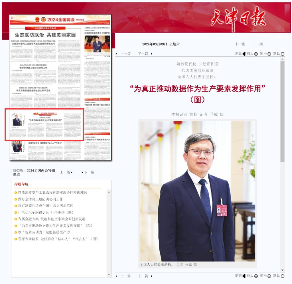 我市有着丰富的数据资源和应用场景,围绕如何用好数据这种新型的生产要素,王劲松一年来投入大量时间和精力,走访相关主管部门和各类企业了解数据资源生产、存储、流通、运营、开发、利用等情况以及各方需求,五进天开园调研数据在科技和产业创新中发挥的作用。今年的全国两会上,王劲松结合自己的走访调研情况,就更好地发挥数据要素在加快培育新质生产力中的关键性作用提出建议。