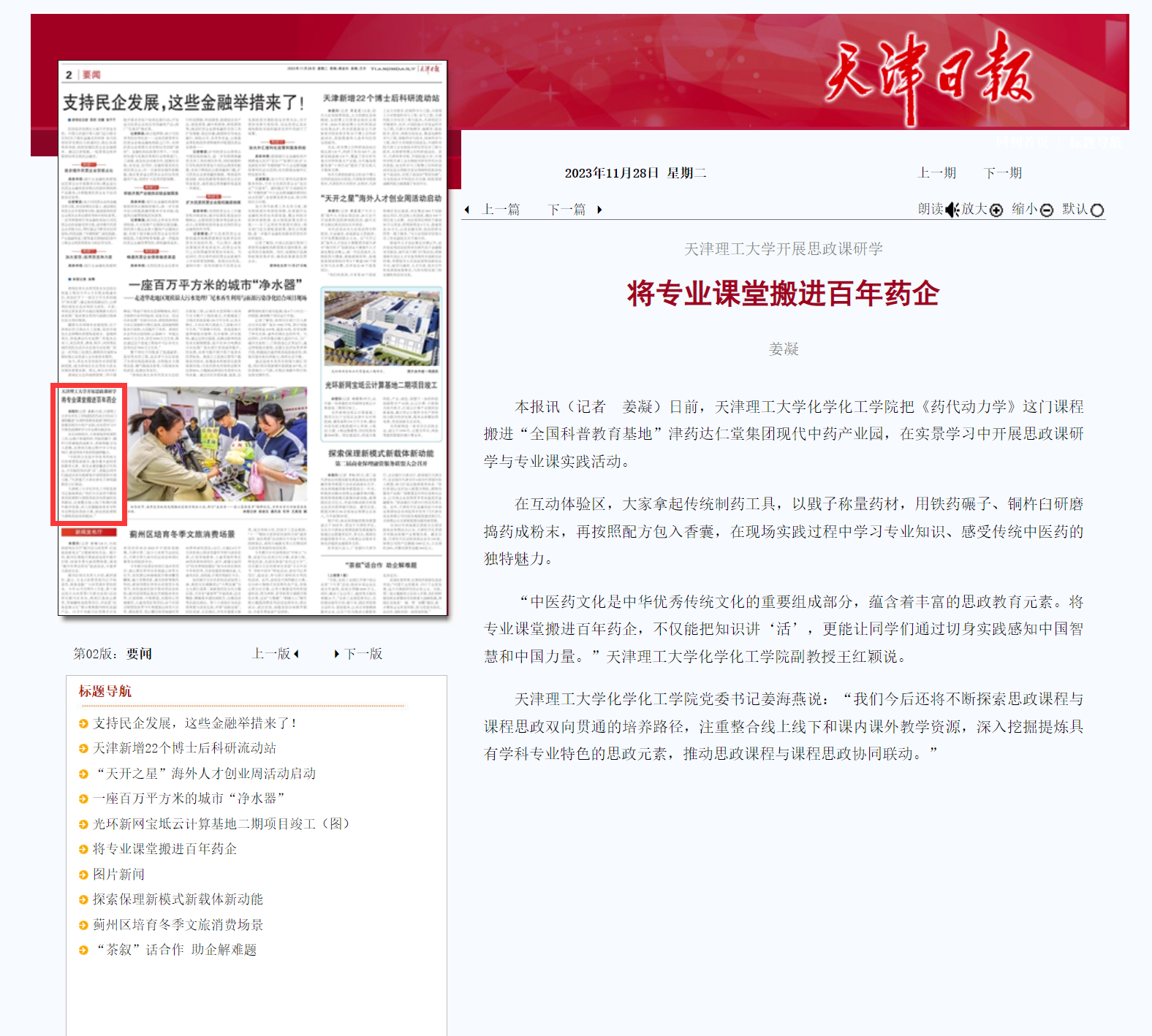 “中医药文化是中华优秀传统文化的重要组成部分,蕴含着丰富的思政教育元素。将专业课堂搬进百年药企,不仅能把知识讲‘活’,更能让同学们通过切身实践感知中国智慧和中国力量。”米兰milan官方网站化学化工学院副教授王红颖说。