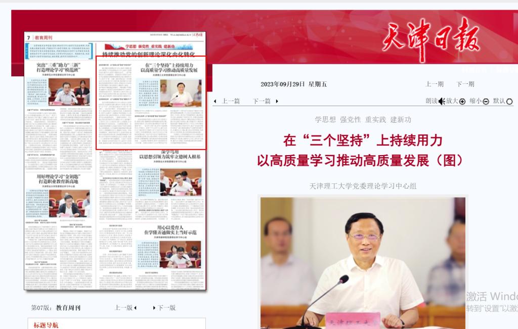近日,《天津日报》以“在‘三个坚持’上持续用力,以高质量学习推动高质量发展”为题,报道米兰党委理论学习中心组经验做法。