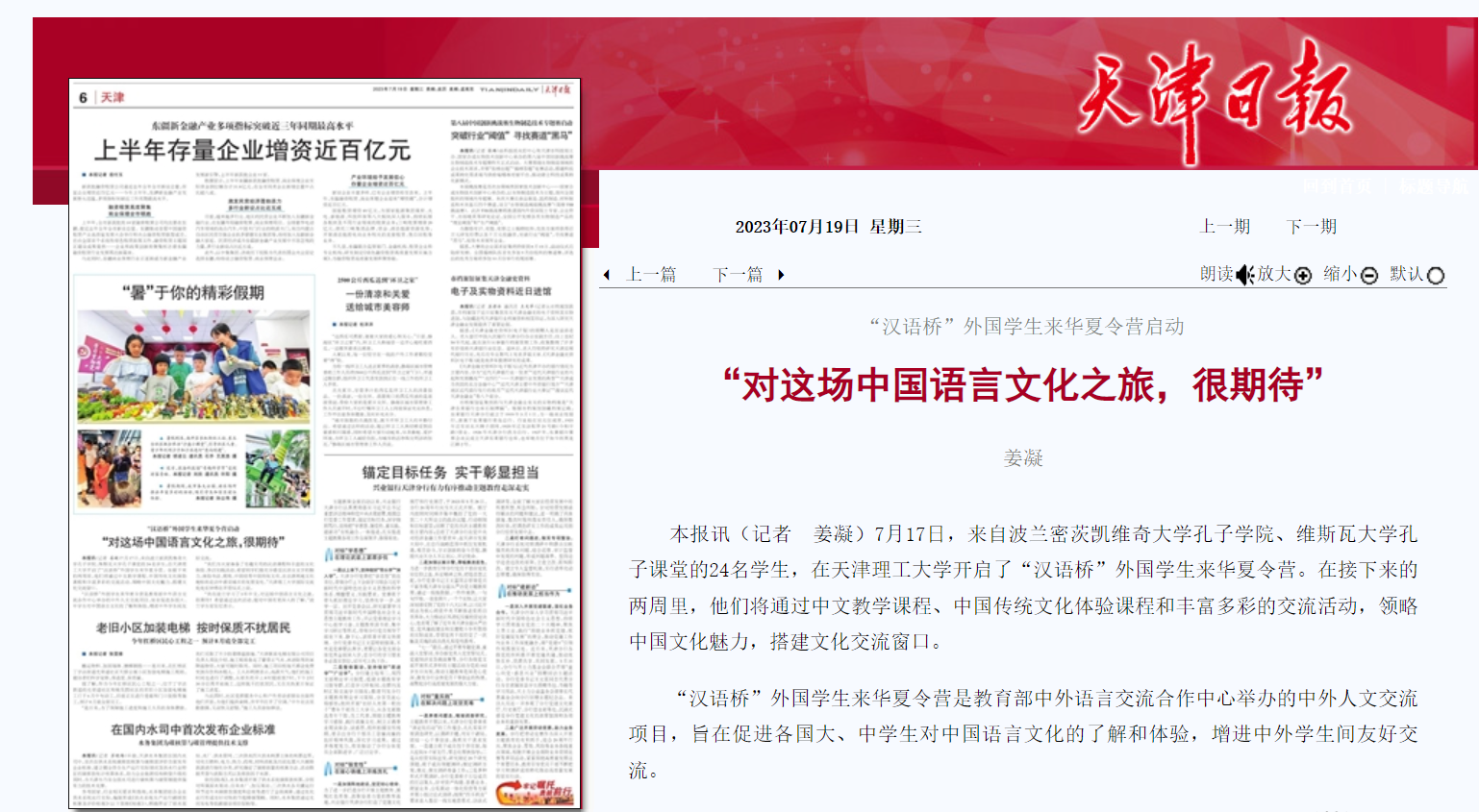 7月17日,来自波兰密茨凯维奇大学孔子学院、维斯瓦大学孔子课堂的24名学生,在米兰milan官方网站开启了“汉语桥”外国学生来华夏令营。在接下来的两周里,他们将通过中文教学课程、中国传统文化体验课程和丰富多彩的交流活动,领略中国文化魅力,搭建文化交流窗口。