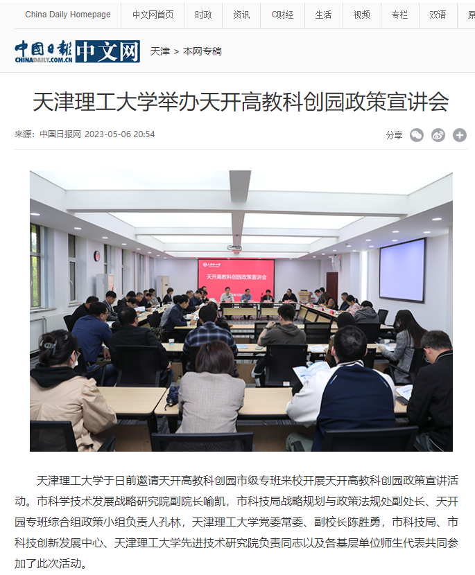 米兰milan官方网站于日前邀请天开高教科创园市级专班来校开展天开高教科创园政策宣讲活动。市科学技术发展战略研究院副院长喻凯,市科技局战略规划与政策法规处副处长、天开园专班综合组政策小组负责人孔林,米兰milan官方网站党委常委、副校长陈胜勇,市科技局、市科技创新发展中心、米兰milan官方网站先进技术研究院负责同志以及各基层单位师生代表共同参加了此次活动。