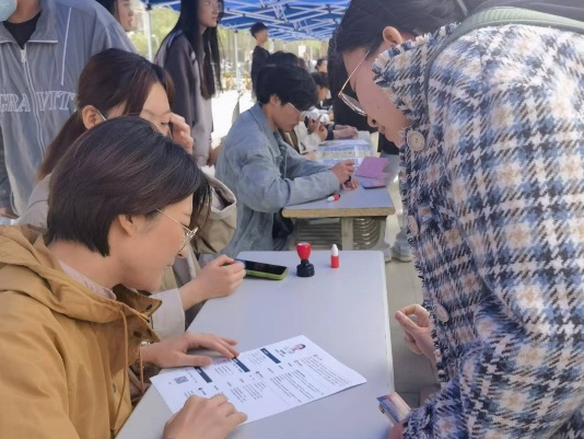 在研考、公考经验宣讲点位,同学们与经验丰富的团委老师、成功上岸的学霸深入交流经验,共享学习资料。在“扬帆计划”推介点位,工作人员重点介绍了2023年春季天津市大学生实习“扬帆计划”工作以及“返家乡”社会实践活动,现场教大家如何报名,如何选择合适的实习岗位。