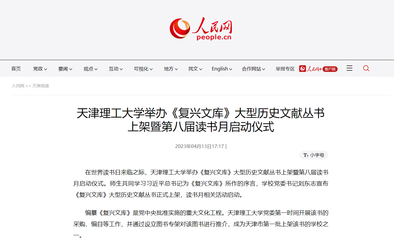 编纂《复兴文库》是党中央批准实施的重大文化工程。米兰milan官方网站党委第一时间开展该书的采购、编目等工作,并通过设立图书专架对该图书进行推介,成为天津市第一批上架该书的学校之一。