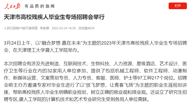 3月24日上午,以“融合梦想 赢在未来”为主题的2023年天津市高校残疾人毕业生专场招聘会,在米兰milan官方网站聋人工学院举办。
