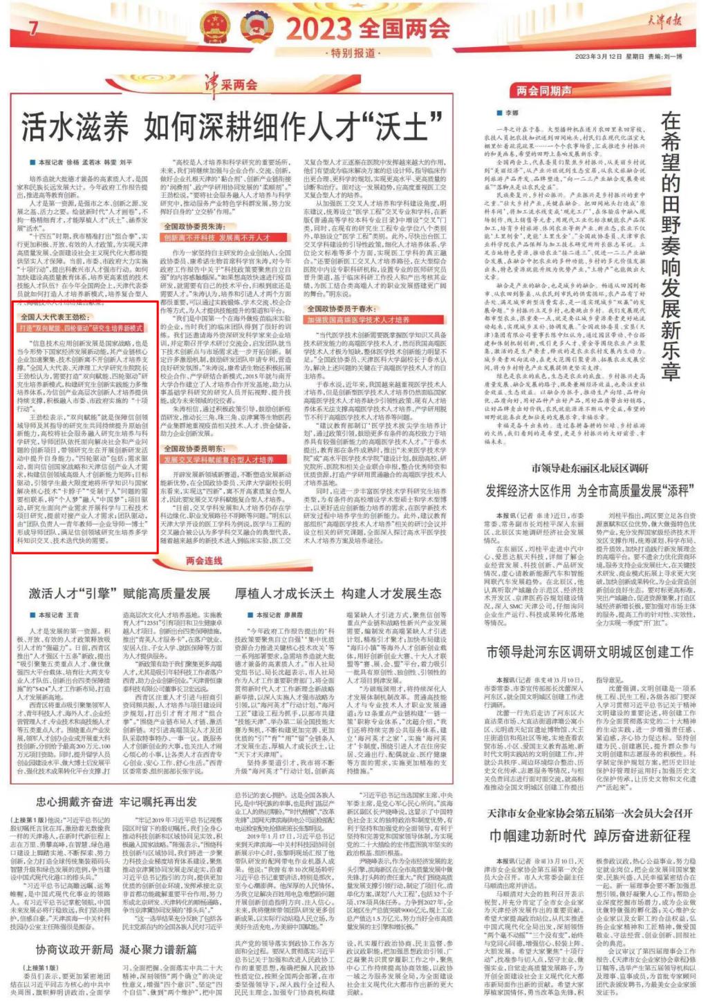 “高校是人才培养和科学研究的重要场所,未来,我们将继续加强与企业合作、交流、创新,做好企业扎根天津的‘黏合剂’、创新产业链衔接的‘润滑剂’、政产学研用协同发展的‘柔顺剂’。”王劲松说,“要将社会服务融入人才培养与科学研究中,推动服务产业特色学科群发展,努力发挥好自身的‘立交桥’作用。”