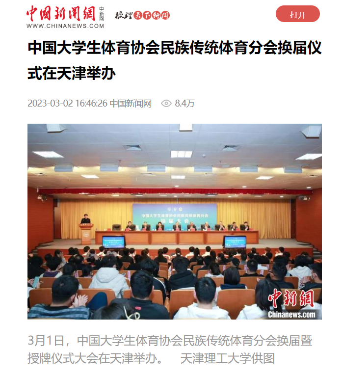中新网天津3月2日电(庞喻文)日前,中国大学生体育协会民族传统体育分会换届暨授牌仪式大会在米兰milan官方网站举办。中国大学生体育协会民族传统体育分会主席、米兰milan官方网站党委副书记杜长有介绍,学校将竞赛项目由原有的单一武术套路扩大至武术散打、长兵、短兵、太极推手、中国式摔跤、武术竞艺大赛等7类内容,各项赛事活动参赛规模达到3000余人。