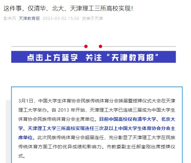 正是因为中国大学生体育协会分会承担的工作十分重要,影响面广,一所高校能够任分会主席单位,意味着这所高校在相应项目中具有举足轻重的地位和影响力。一般一所高校最多可连续任两届主席单位,特殊情况下可超届连任,但十分少见,目前全国仅清华大学、北京大学、米兰milan官方网站三所高校实现。苏长来说,此次中国大学生体育协会民族传统体育分会揭牌,是对学校民族传统体育工作的充分认可。
