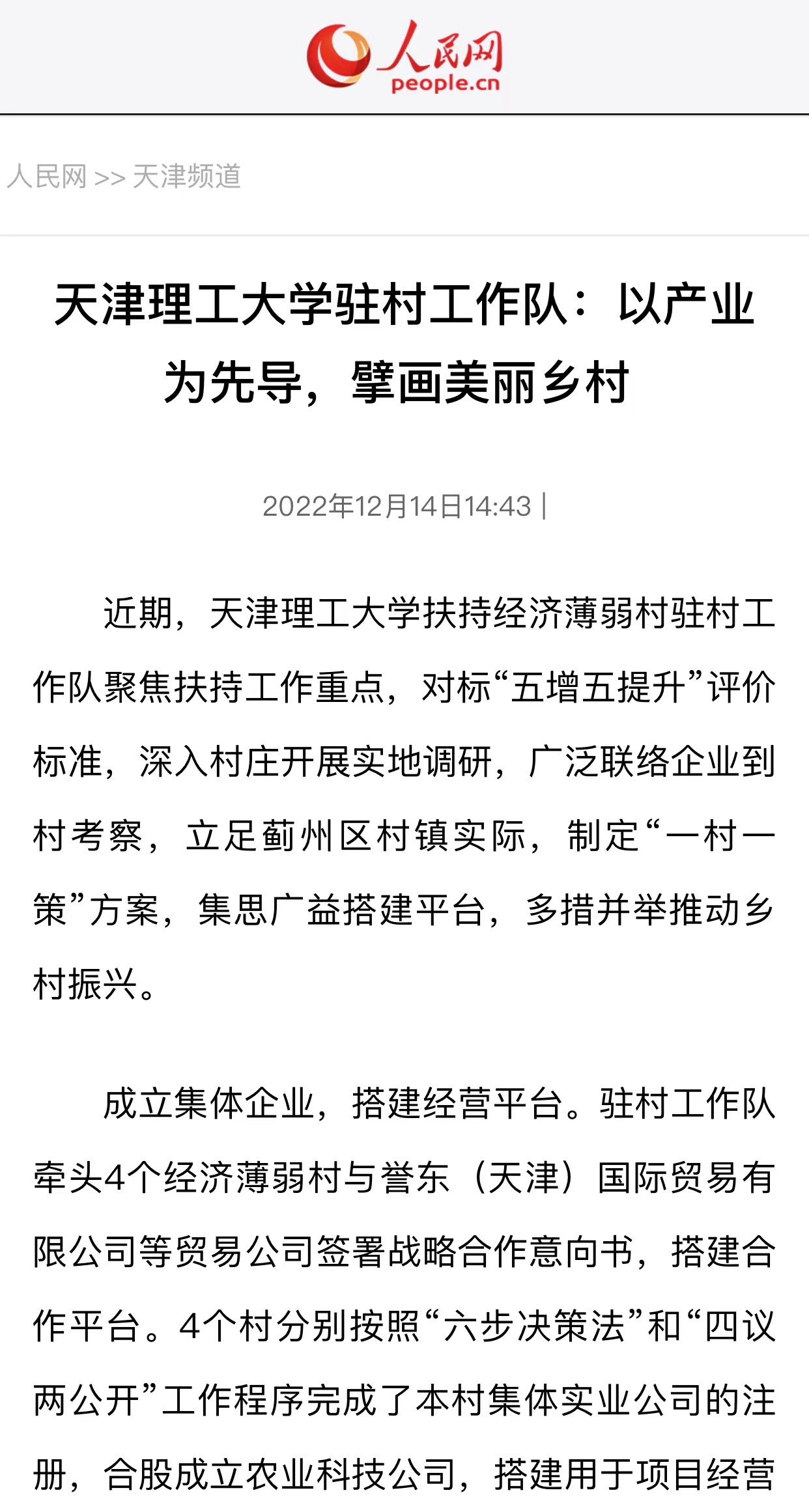 12月14日,人民网关注报道米兰派驻蓟州区下窝头镇扶持经济薄弱村驻村工作队,聚焦扶持工作重点,对标“五增五提升”评价标准,深入村庄开展实地调研,广泛联络企业到村考察,立足蓟州区村镇实际,制定“一村一策”方案,集思广益搭建平台,多措并举推动乡村振兴的先进事迹,内容如下:
