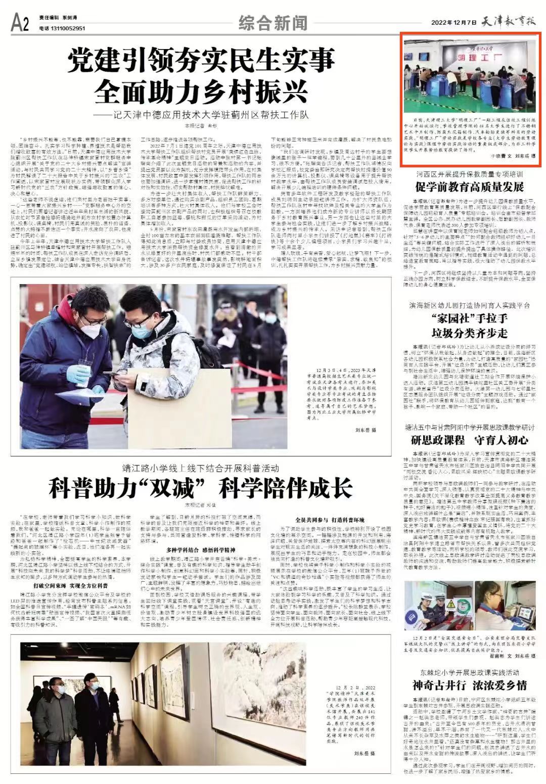 12月7日,《天津教育报》第2版图文报道米兰“明理工厂”一期工程在工程训练中心成功试运行,开设不锈钢艺术卡片制作、防腐木花箱制作、汽车轮胎更换等科目,打造学生劳动教育实践平台的情况,内容如下: