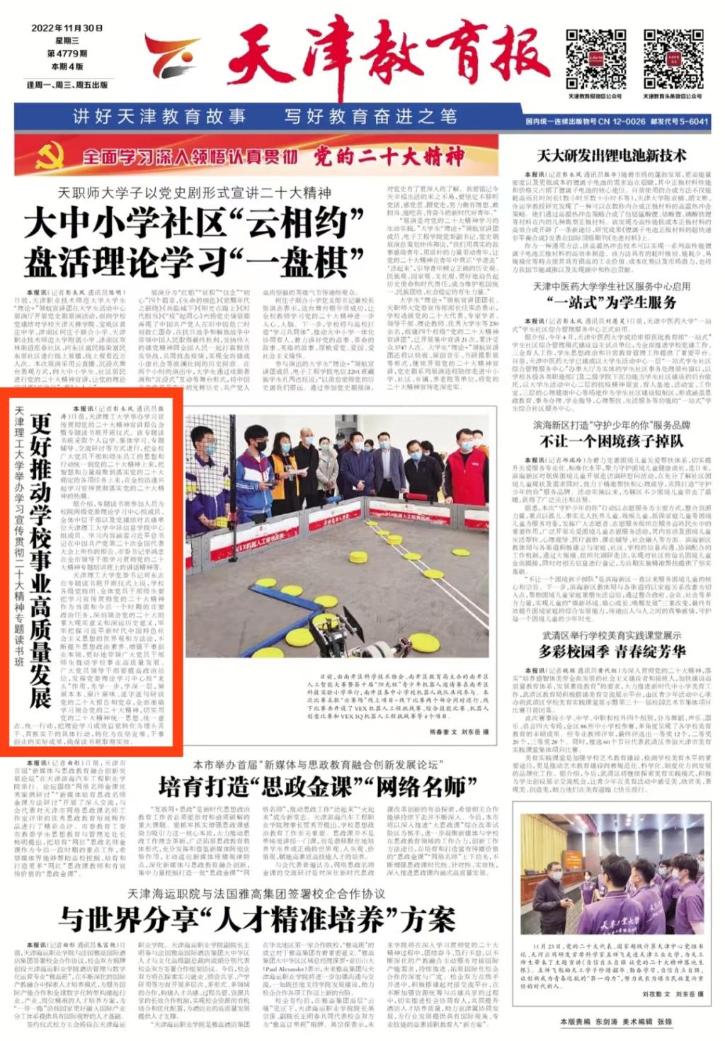 11月30日,《天津教育报》在头版报道米兰举办学习宣传贯彻党的二十大精神专题读书班,把全校广大党员干部和师生员工的思想和行动统一到党的二十大精神上来,把智慧和力量凝聚到落实党的二十大确定的各项任务上来,在全校迅速兴起学习宣传贯彻落实党的二十大精神的热潮,更好推动学校事业高质量发展,内容如下: