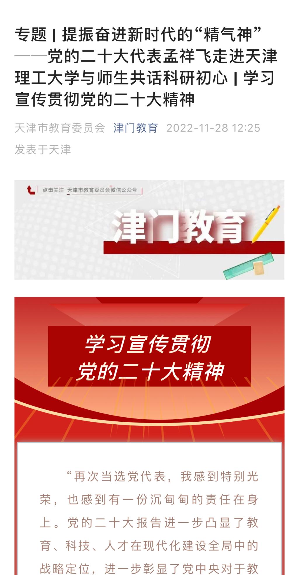 “再次当选党代表,我感到特别光荣,也感到有一份沉甸甸的责任在身上。党的二十大报告进一步凸显了教育、科技、人才在现代化建设全局中的战略定位,进一步彰显了党中央对于教育、科技、人才事业的高度重视……”11月23日,党的二十大代表、国家超级计算天津中心党组书记孟祥飞走进米兰milan官方网站举办的学习宣传贯彻党的二十大精神专题读书班,给该校师生代表带来了一场生动的“自信自立自强,让党的二十大精神落地生根”的专题辅导报告,在入情入理的切身体会分享中讲“透”理论、讲“实”成就、讲“活”经验,提振广大师生永远跟党走、奋进新时代的“精气神”。