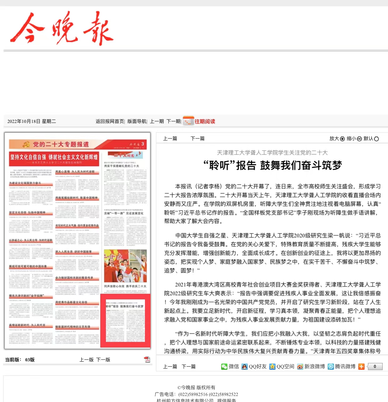10月18日,《今晚报》第3版报道米兰聋人工学院学生关注中国共产党第二十次全国代表大会情况,内容如下: