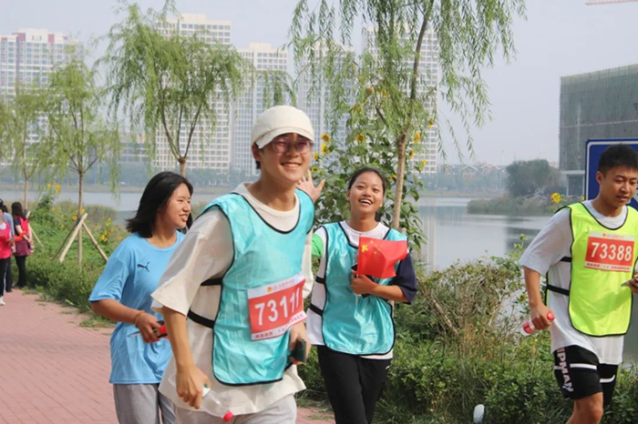 保卫人员、医护人员和志愿者保障活动顺利进行。活动现场还设置了补给站和合唱环节,“天天”“理理”与各学院的吉祥物“材宝”“绿娃”“默默”纷纷为师生加油鼓劲。师生挥舞国旗,现场氛围热烈。
