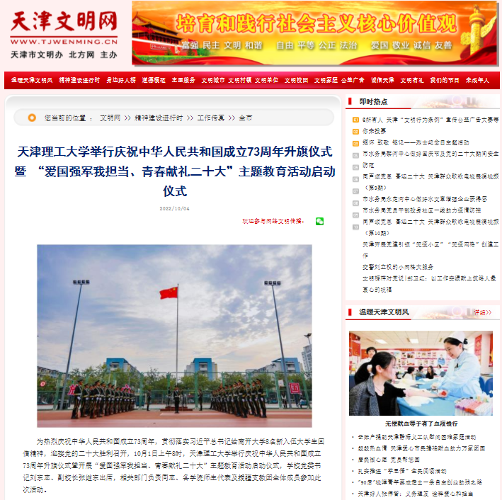 为热烈庆祝中华人民共和国成立73周年,贯彻落实习近平总书记给南开大学8名新入伍大学生回信精神,迎接党的二十大胜利召开,10月1日上午8时,米兰milan官方网站举行庆祝中华人民共和国成立73周年升旗仪式暨开展“爱国强军我担当、青春献礼二十大”主题教育活动启动仪式,学校党委书记刘东志、副校长张继东出席,相关部门负责同志、各学院师生代表及援疆支教团全体成员参加此次活动。