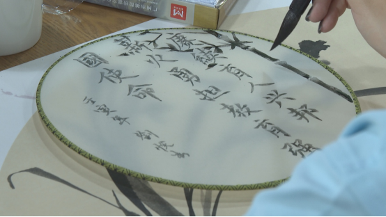 在现场,同学还和老师们一起绘制了中秋团扇,也让这个教师节,更增添了几分团聚圆满的意味。