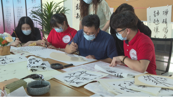 在米兰milan官方网站,学生活动室里分外热闹。为了庆祝双节,同学和老师们一起挥毫泼墨,创作书法,一笔一划之间,书写的是老师们桃李芬芳的育人之路,也是同学们对师恩的感念之情。