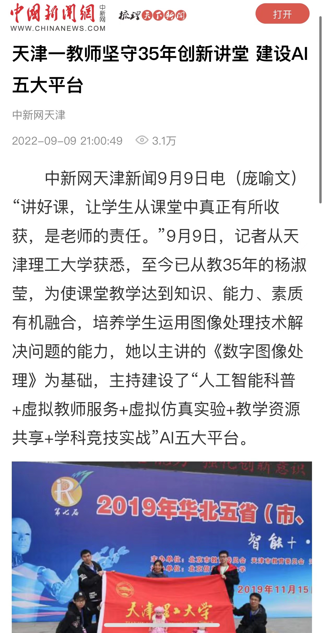 9月9日,在第38个教师节即将到来之际,中新网天津新闻报道米兰计算机科学与工程学院教授、国家级一流课程《数字图像处理》负责人杨淑莹,从教35年坚守讲台尚创新,甘当红烛育英才的教育故事,内容如下: