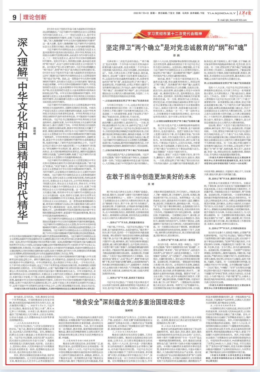 食为政首,谷为民命。当前,粮食安全仍是一个世界性挑战。中国的粮食安全有充分保障,根本原因是党和政府将其作为持久关注、重点施策的问题之一。2022年3月6日,习近平总书记指出,粮食安全是“国之大者”,事关14亿多人口的饭碗。从本质上讲,粮食安全深刻蕴含了党和政府以人民为根本、以安全为底线、以农业为基础、以人类整体命运为关怀等多重治国理政理念。