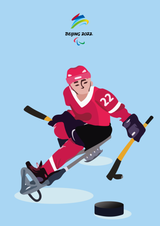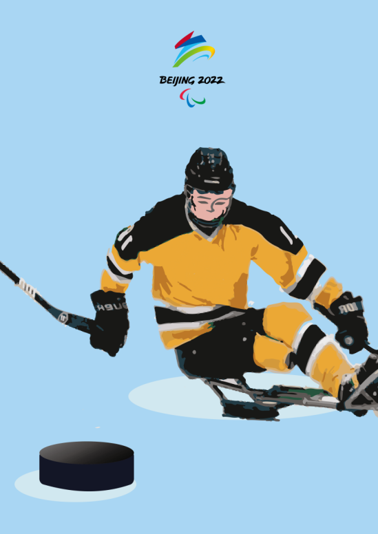 设计理念:作品的整体风格以冬残奥运会最经典的冰球运动的两名冰球运动员为主,用五颜六色的色块拼贴出运动员在冰雪上尽情享受雪上极限运动的速度与激情,让冰雪燃烧起来、热起来。表达出冬残奥会每个运动员的激情、励志、自强不息。
