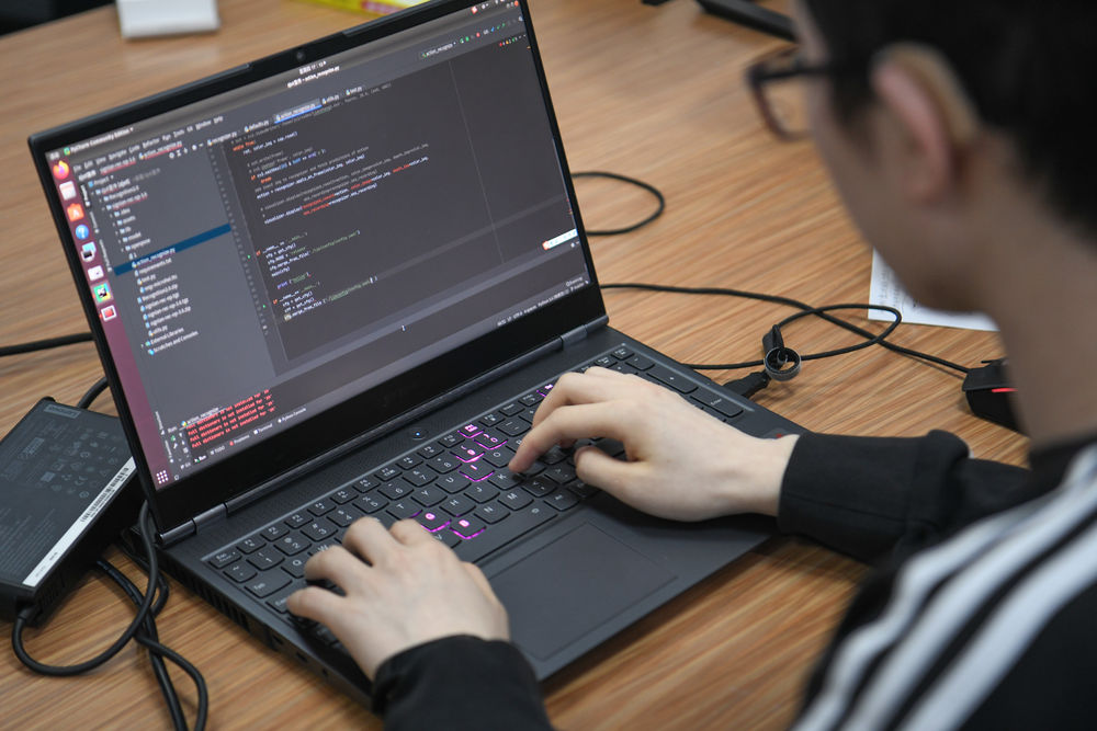 米兰milan官方网站聋人工学院学生在进行手语识别系统调试。(新华社记者 孙凡越 摄)