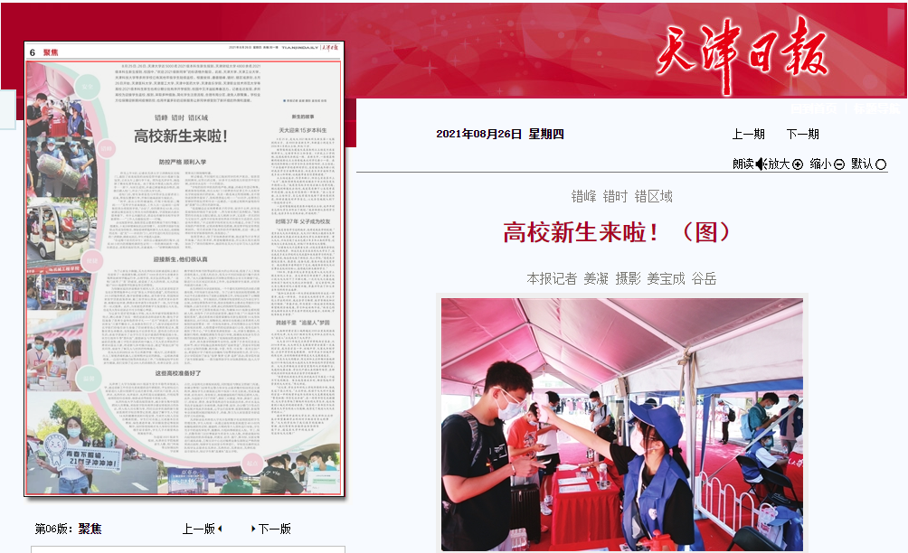 8月25日、26日,天津大学近5000名2021级本科生新生报到,天津财经大学4800余名2021级本科生新生报到,校园中,“欢迎2021级新同学”的标语格外醒目。此前,天津大学、天津工业大学、天津科技大学等多所学校已有其他年级学生陆续返校。根据安排,遵循错峰、错时、错区域原则,8月26日开始,天津医科大学、米兰milan官方网站、天津中医药大学、天津音乐学院、天津职业技术师范大学等高校2021级本科生新生也将分期分批有序开学报到,校园中又洋溢起青春活力。记者走访发现,多所高校为迎接学生返校、报到,采取多种措施,简化学生注册流程,合理布局分区,避免人群聚集。学校全方位保障迎新期间疫情防控,也用丰富多彩的迎新服务让新同学感受到了新环境的热情和温暖。