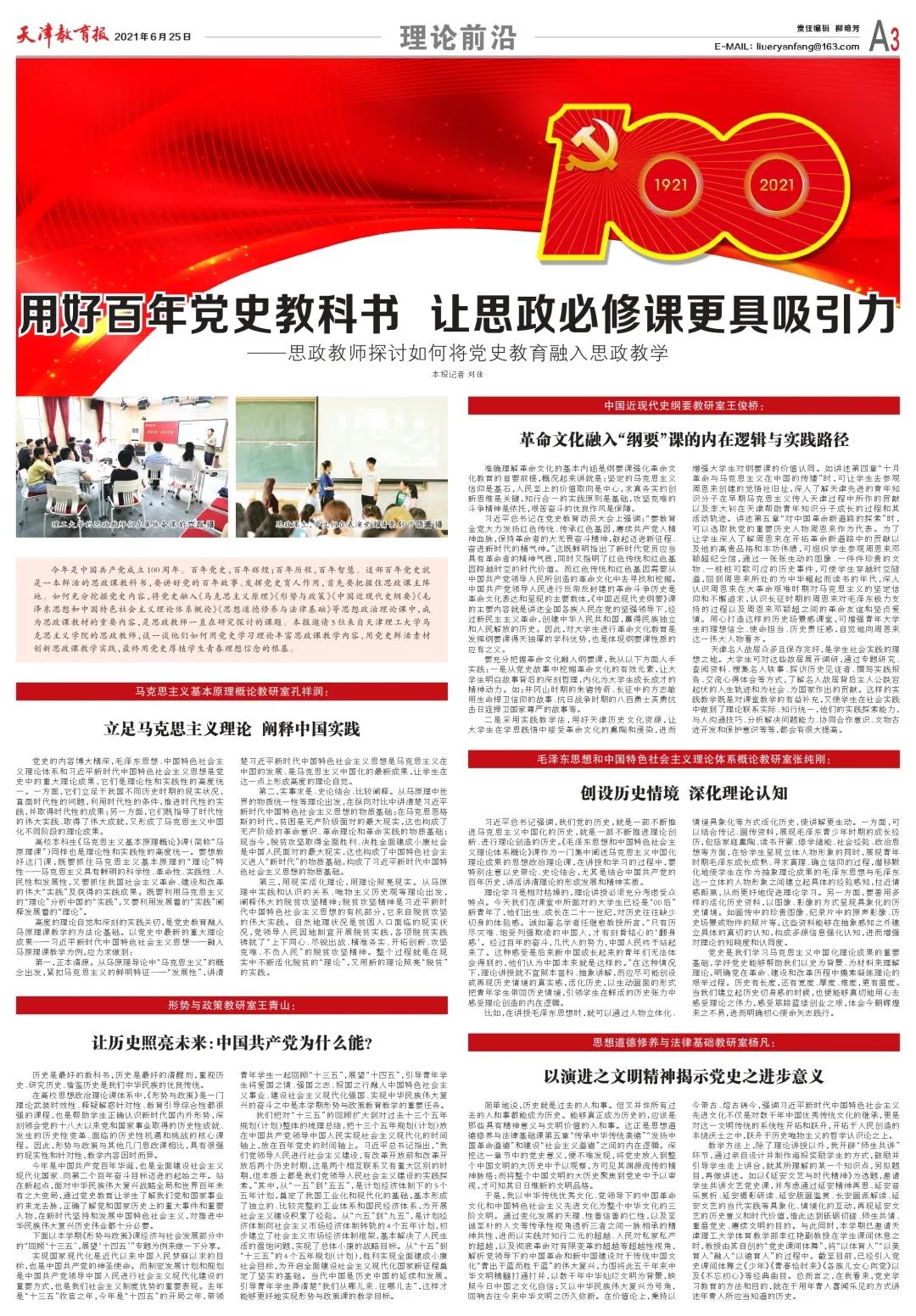 今年是中国共产党成立100周年。百年党史,百年辉煌;百年历程,百年智慧。这部百年党史就是一本鲜活的思政课教科书,要讲好党的百年故事、发挥党史育人作用,首先要把握住思政课主阵地。如何充分挖掘党史内容,将党史融入《马克思主义原理》《形势与政策》《中国近现代史纲要》《毛泽东思想和中国特色社会主义理论体系概论》《思想道德修养与法律基础》等思想政治理论课中,成为思政课教材的重要内容,是思政教师一直在研究探讨的课题。本报邀请5位来自米兰milan官方网站马克思主义学院的思政教师,谈一谈他们如何用党史学习理论丰富思政课教学内容,用党史鲜活素材创新思政课教学实践,最终用党史厚植学生青春理想信念的根基。